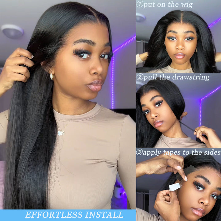 More Face 13x6 HD Straight Lace Frontal Wigs Pre Bleached Knots Human Hair Wigs With Elastic Drawstring