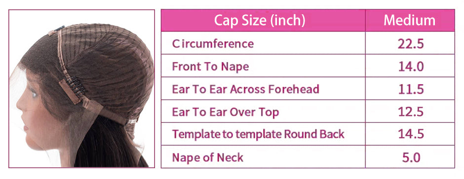 Taille du bonnet : taille moyenne, environ 22,5 pouces.